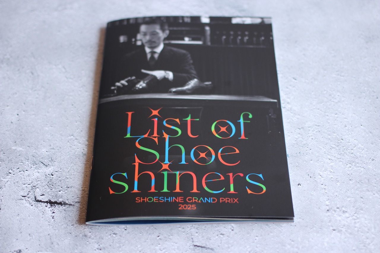 SHOESHINE GRAND PRIX 2025に出場する選手総勢64名と審査員のプロフィール、審査基準や使用道具一覧等が載った選手名鑑。